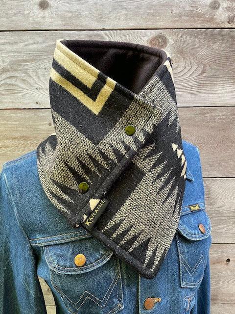 This one-of-a-kind buckaroo cowl is handmade from authentic Pendleton 100% wool fabric in the iconic Harding design. Each buckaroo comes fully lined with super warm luxe fleece or faux sherpa and finished with two heavy western snaps.