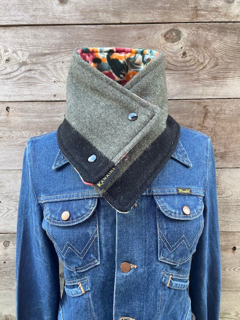 These one-of-a-kind buckaroo cowls are handmade from authentic Pendleton wool blanket from the Pioneer collection. Each buckaroo comes fully lined with super warm luxe fleece or faux sherpa and finished with two heavy western snaps.