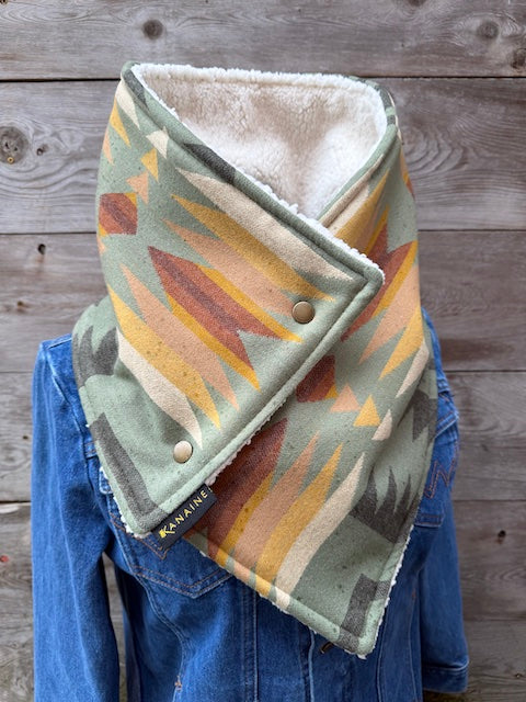 This one-of-a-kind buckaroo cowl is handmade from authentic Pendleton lightweight 100% wool blanket in the iconic Harding print. Each buckaroo comes fully lined with super soft luxe fleece or faux sherpa and finished with two heavy western snaps.