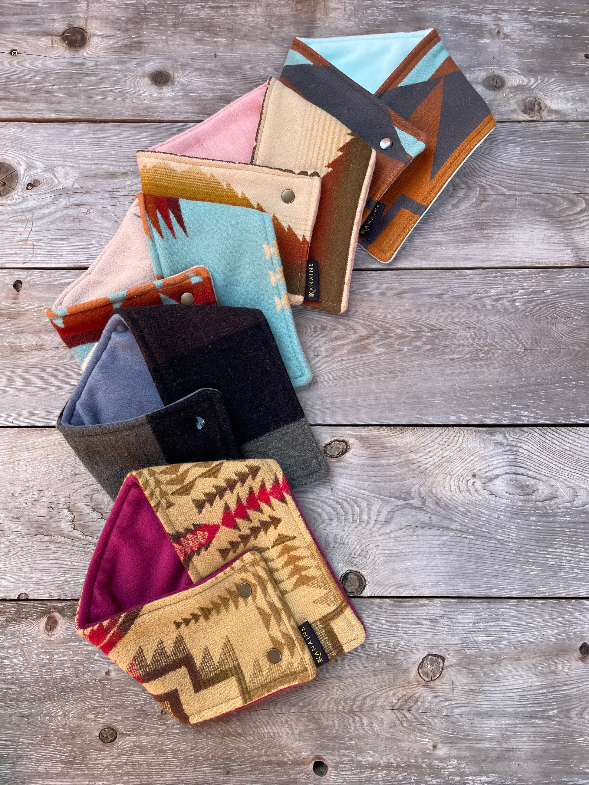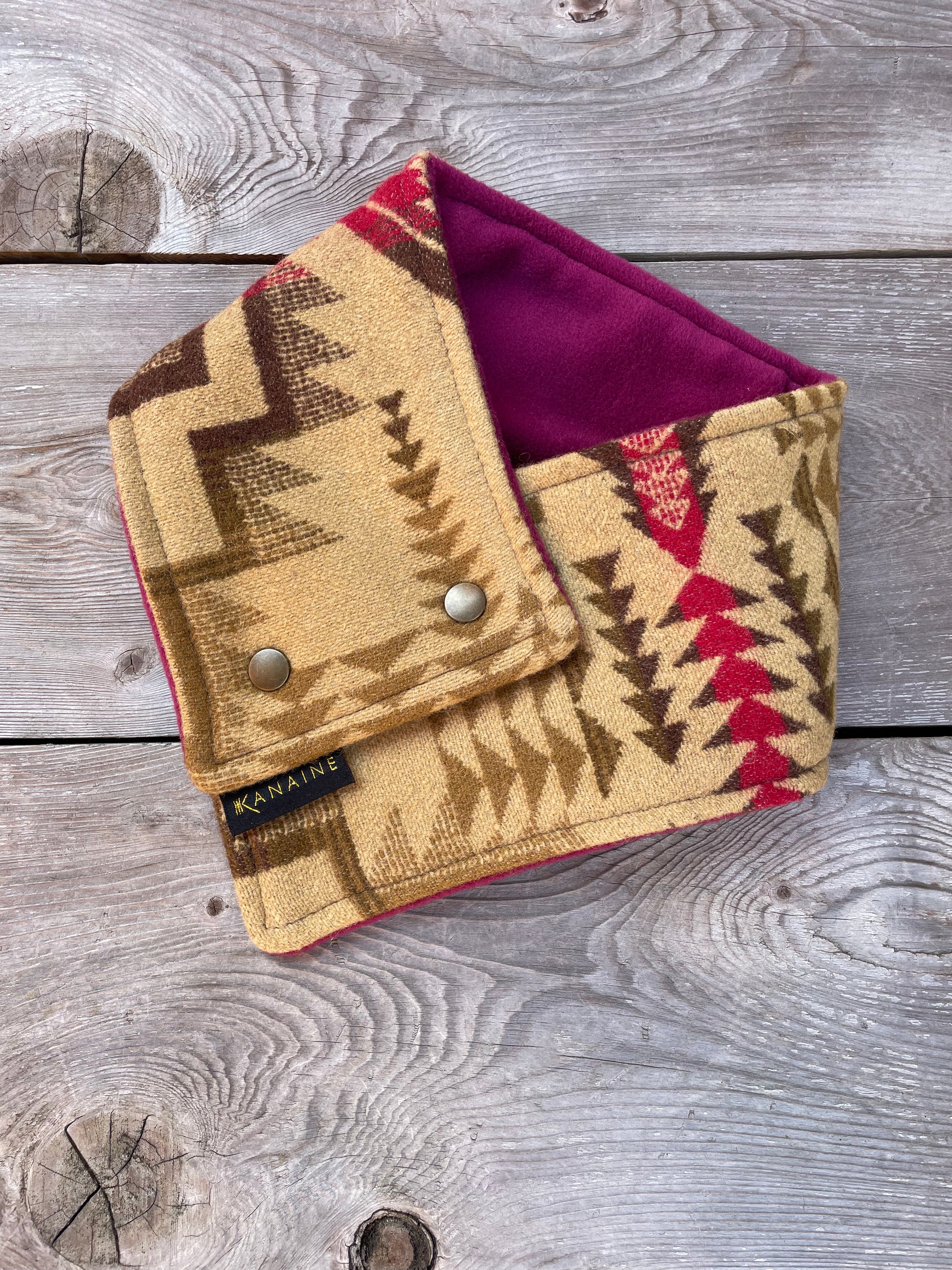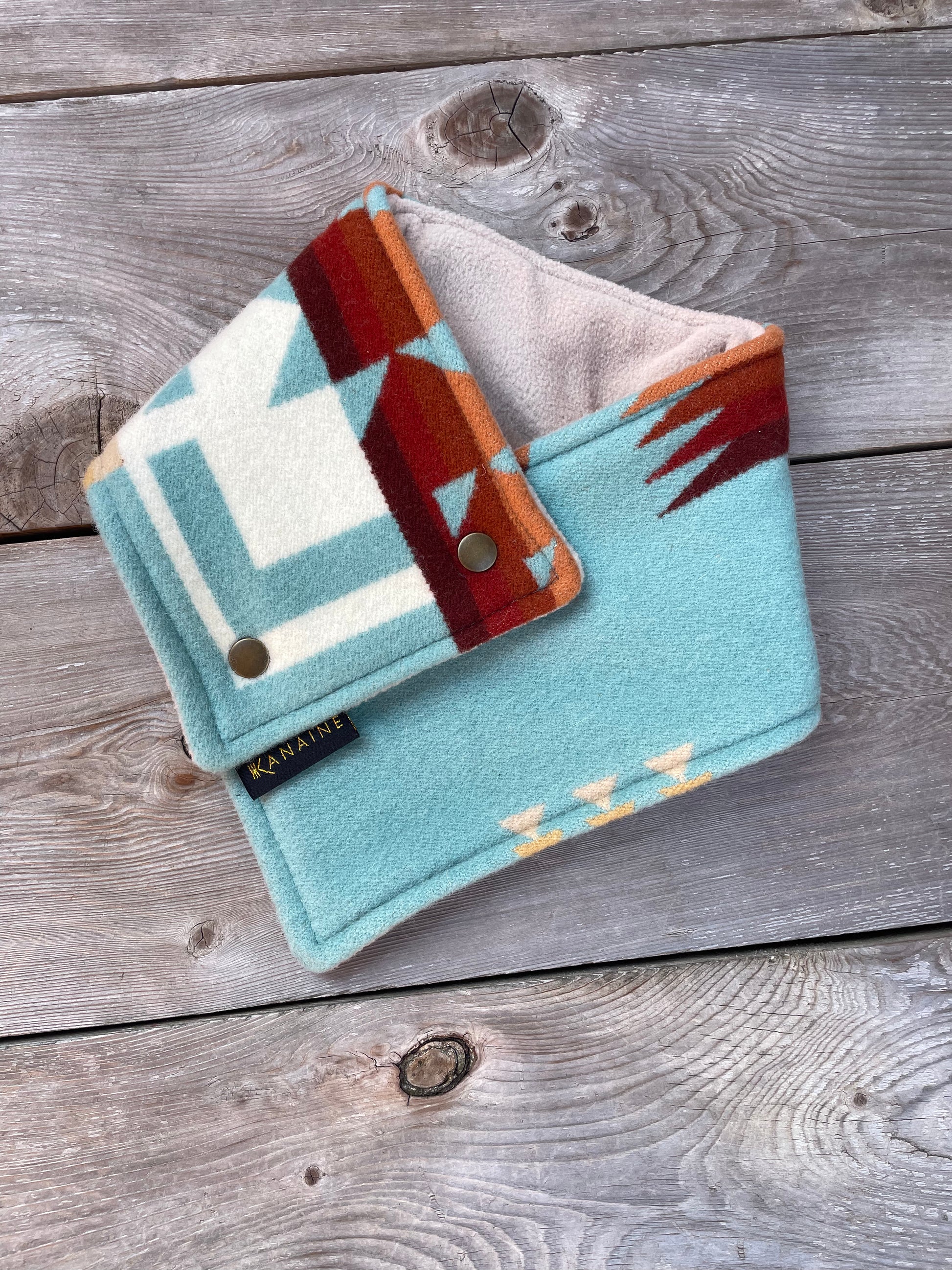 These one-of-a-kind buckaroo cowls are handmade from authentic Pendleton wool blankets and fully lined with either super warm luxe fleece or faux sherpa. Each is finished with two heavy western snaps and gold Kanaine tag:)